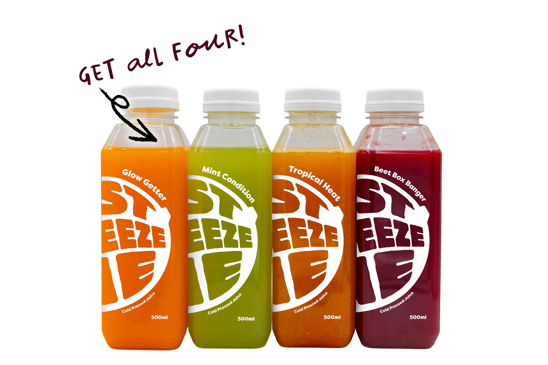 This 4-pack features a handpicked mix of our cold-pressed juices — made from raw fruits and veggies with zero additives. Hydrating, energizing, and packed with real nutrition to keep you glowing all week.