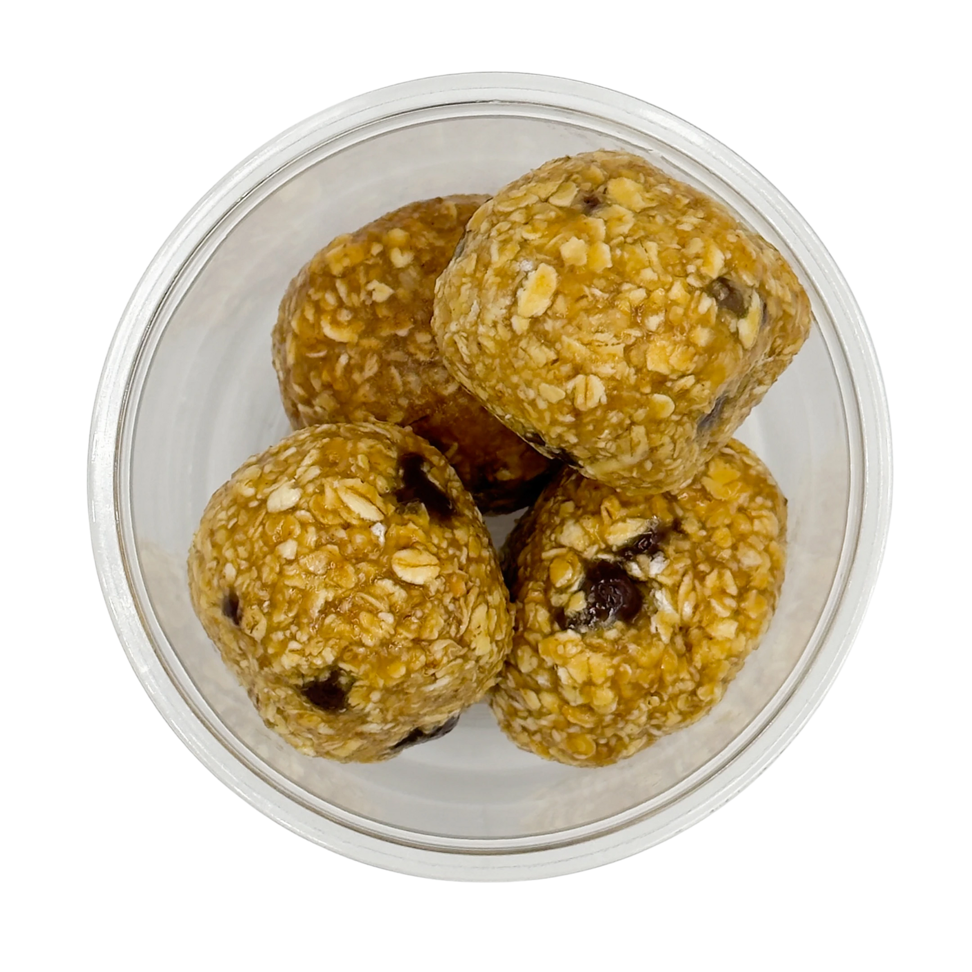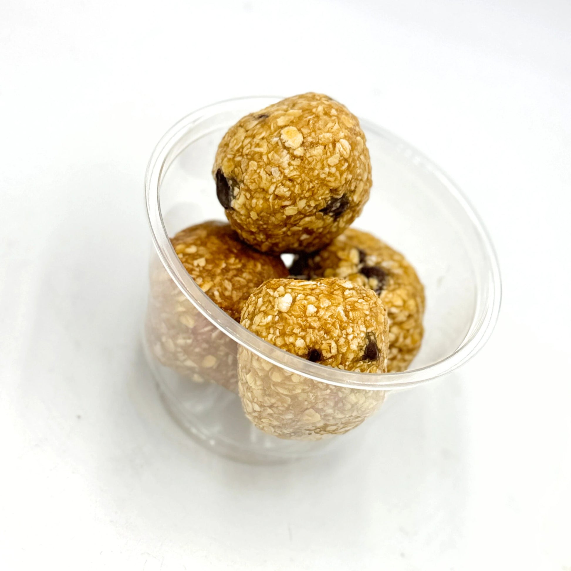 If you love Peanut Butter and chocolate you will love these Energy Balls! Convenient and easy to take with you on the run! Peanut butter, Whey Isolate Protein, Oats, Dark Chocolate chips, all mixed together into a Perfect Bite sized ball with Honey and Stevia.